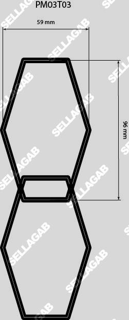 - Losanges tronqués et imbriqués 96 mm × 59 mm.